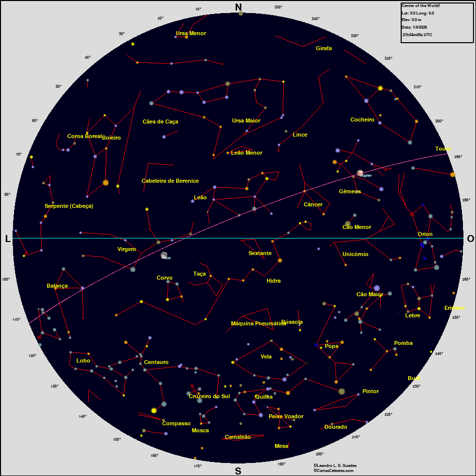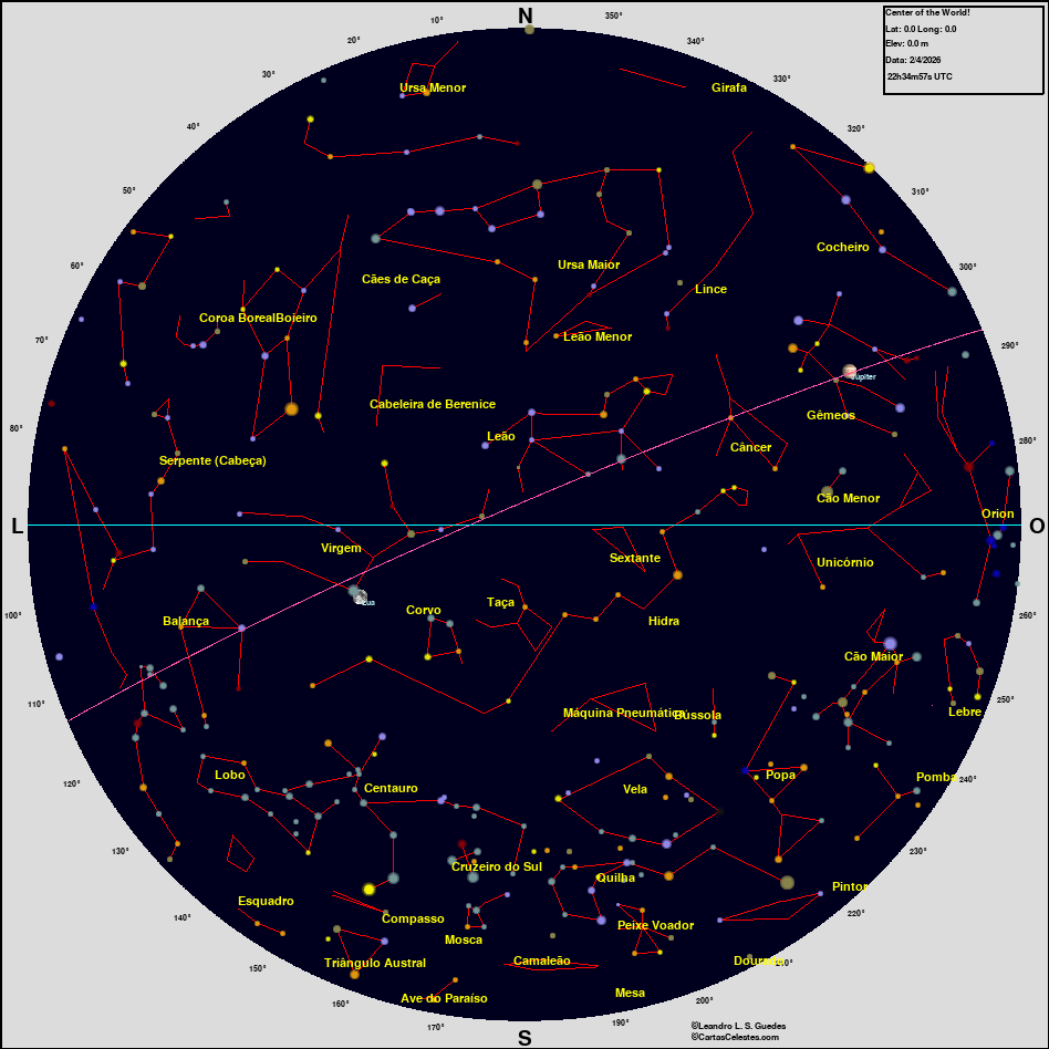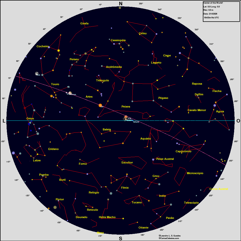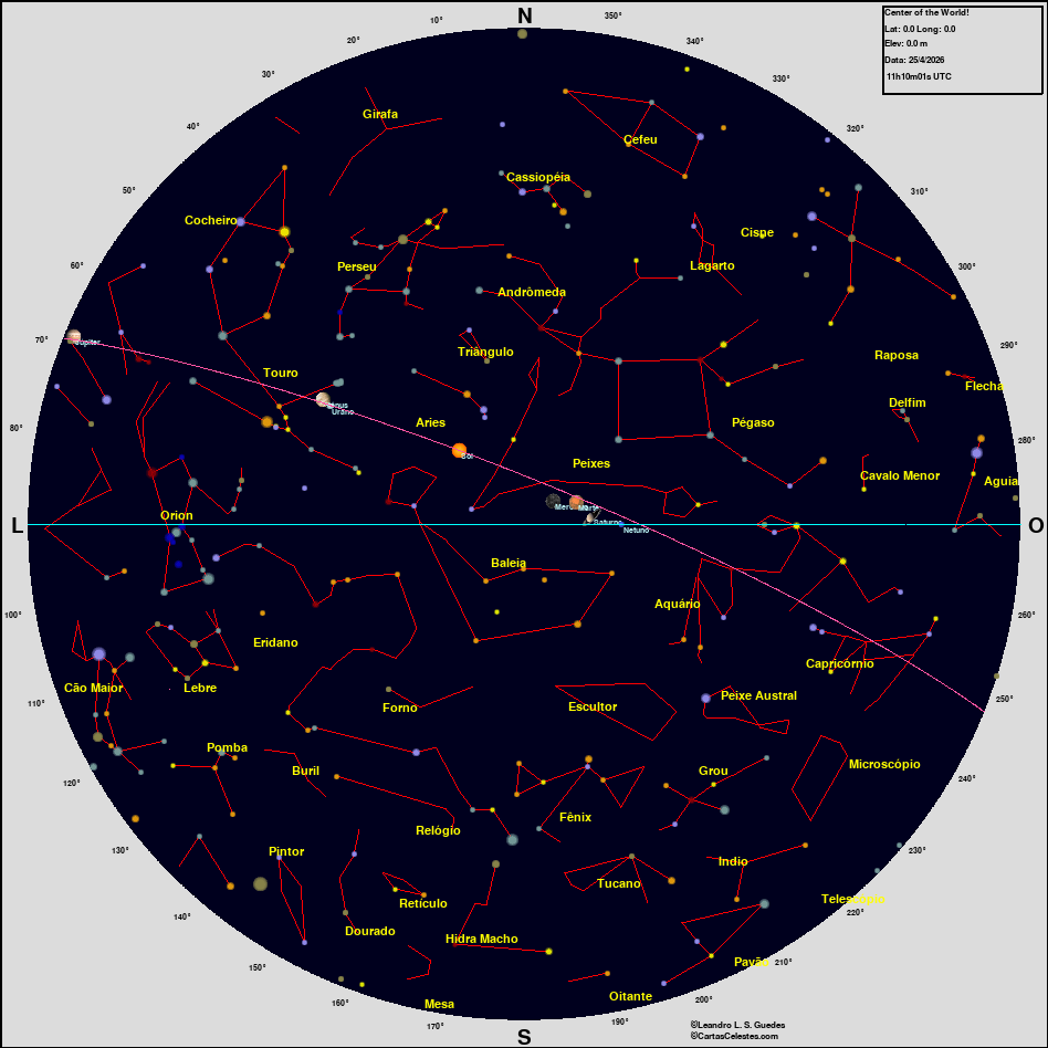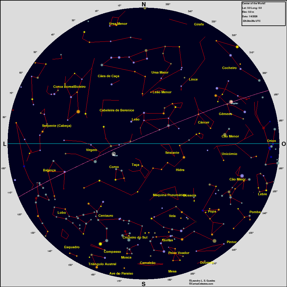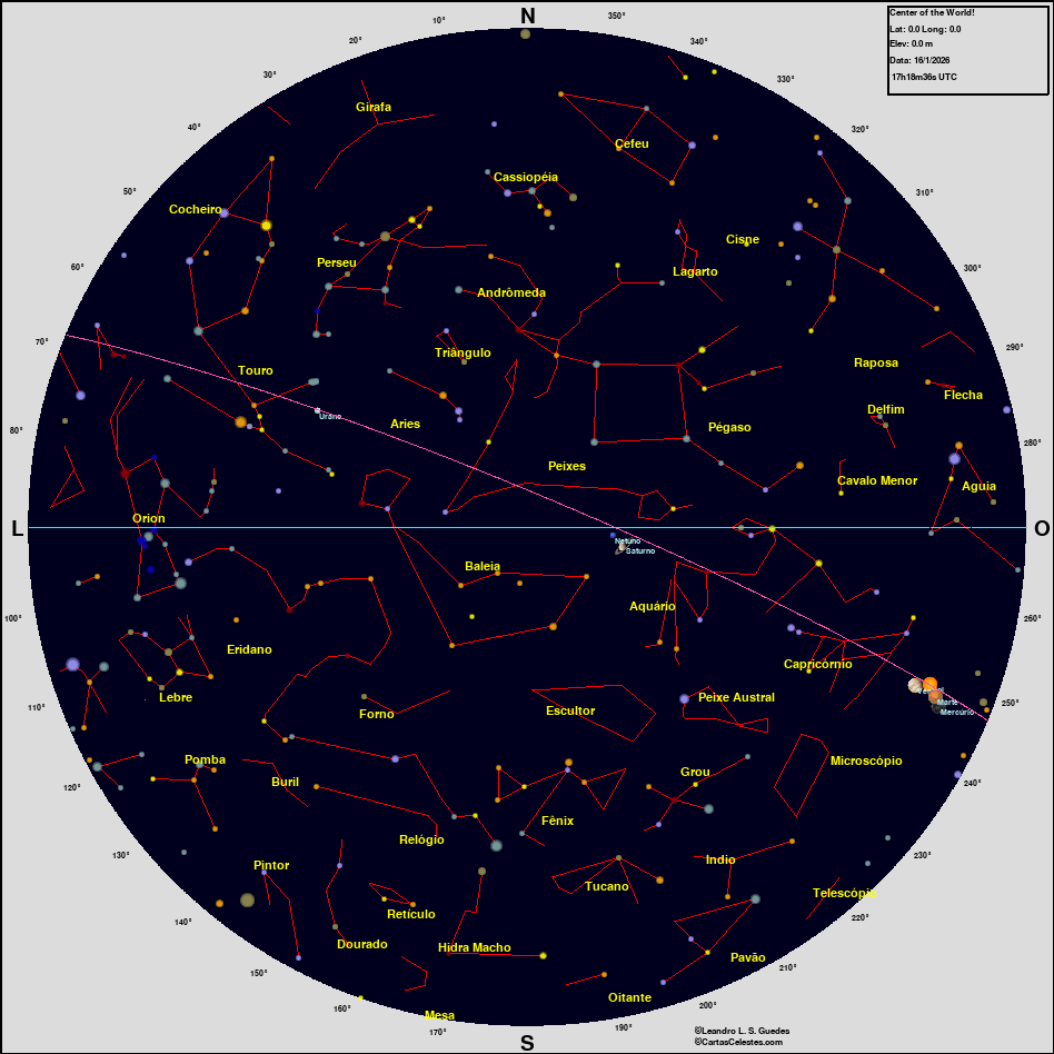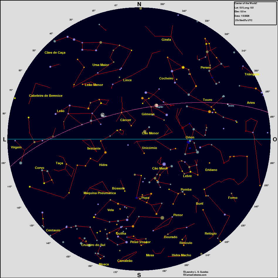 Neste site você encontra todas as informações necessárias para observar o céu, seja você um astrônomo amador, profissional ou um apaixonado pelo céu que está iniciando agora suas atividades na Astronomia. Esperamos que encontre tudo o que deseja para planejar uma noite de observação do céu, e para aprender sobre esse aspecto da natureza que fascina o homem desde seus primeiros passos nesse planeta. Bons Céus!