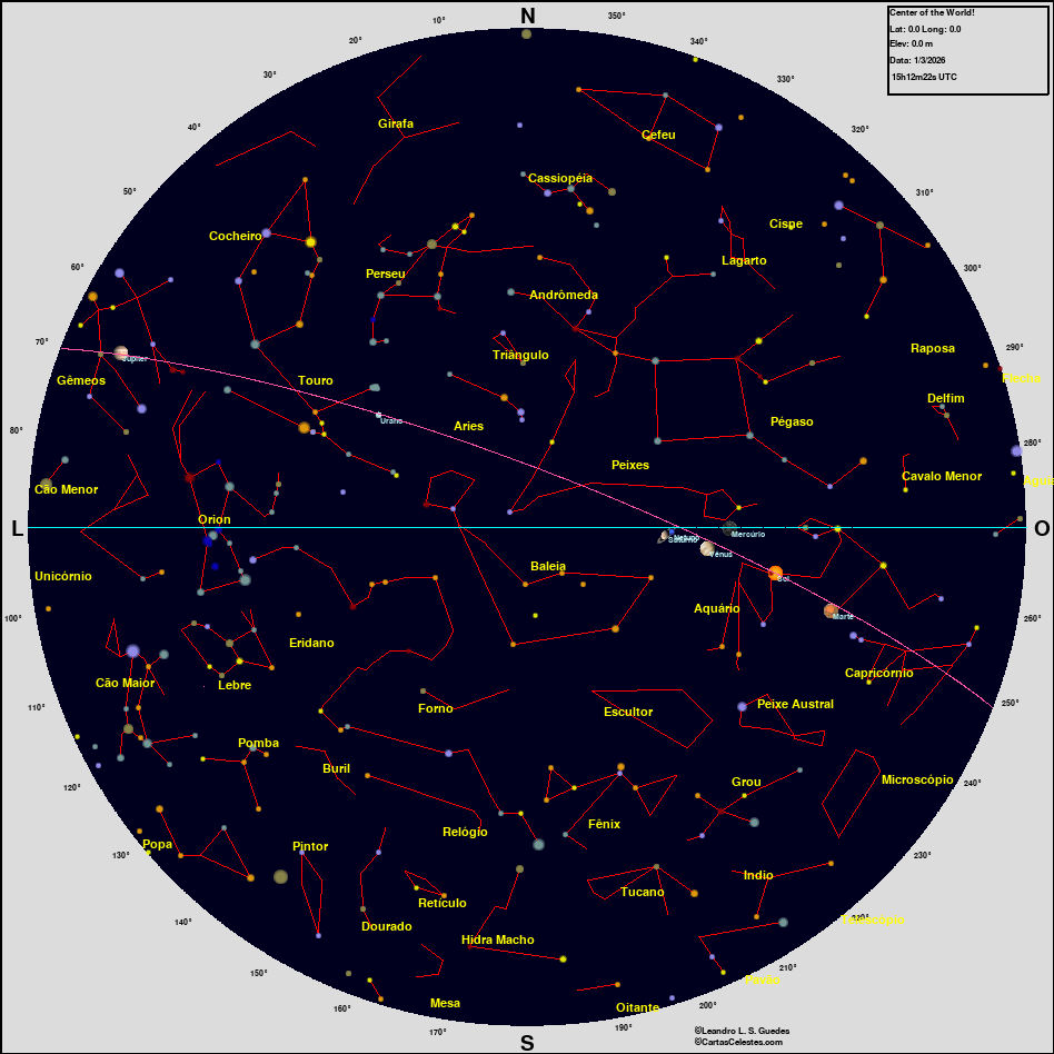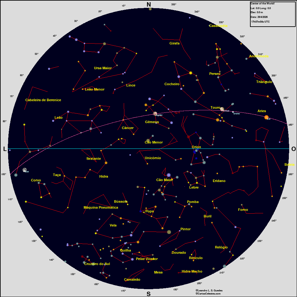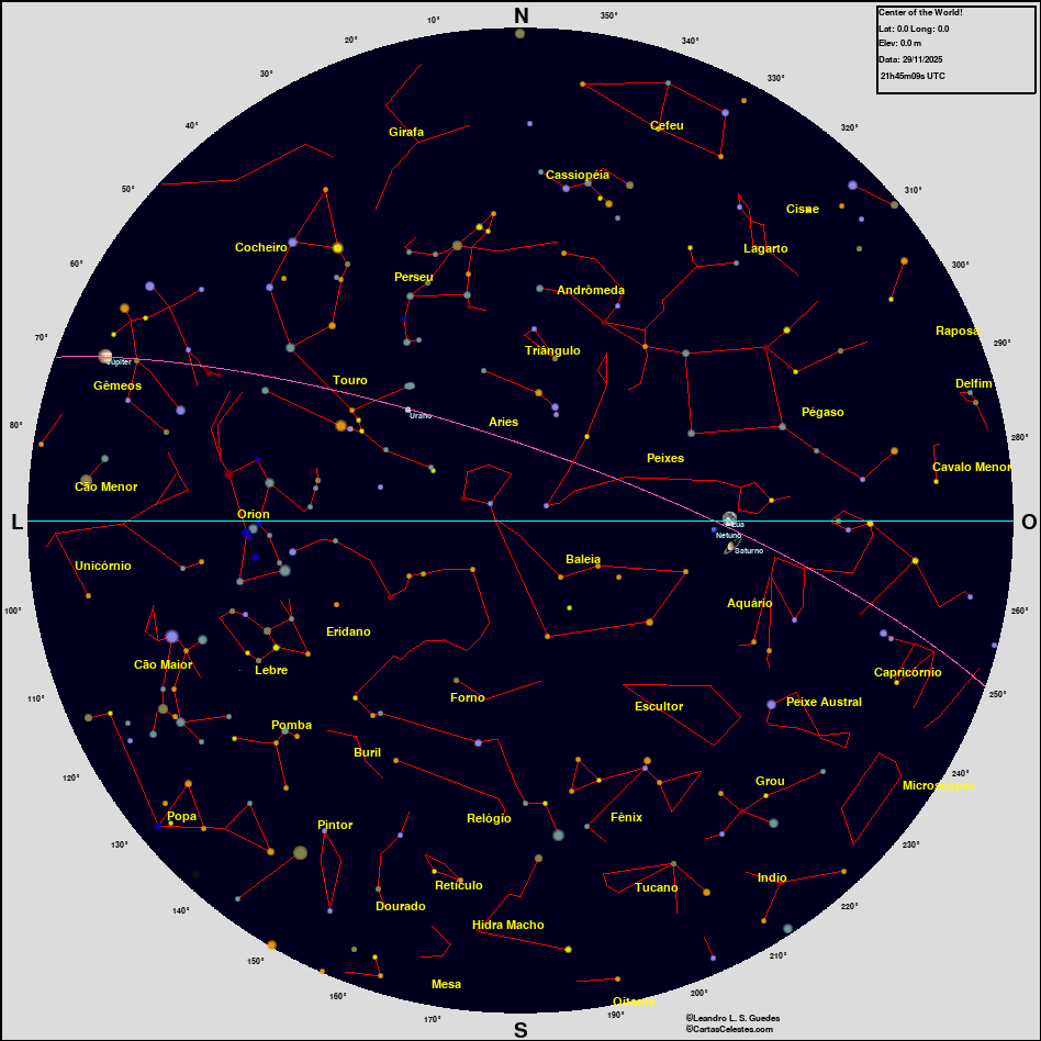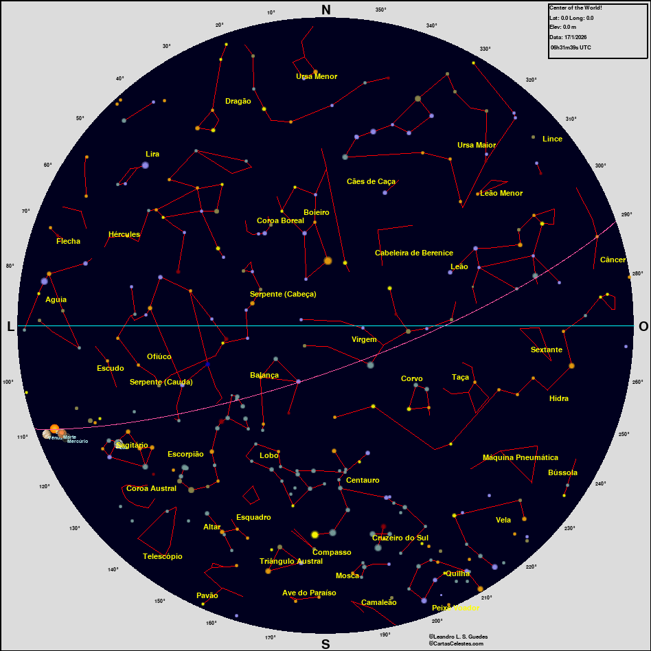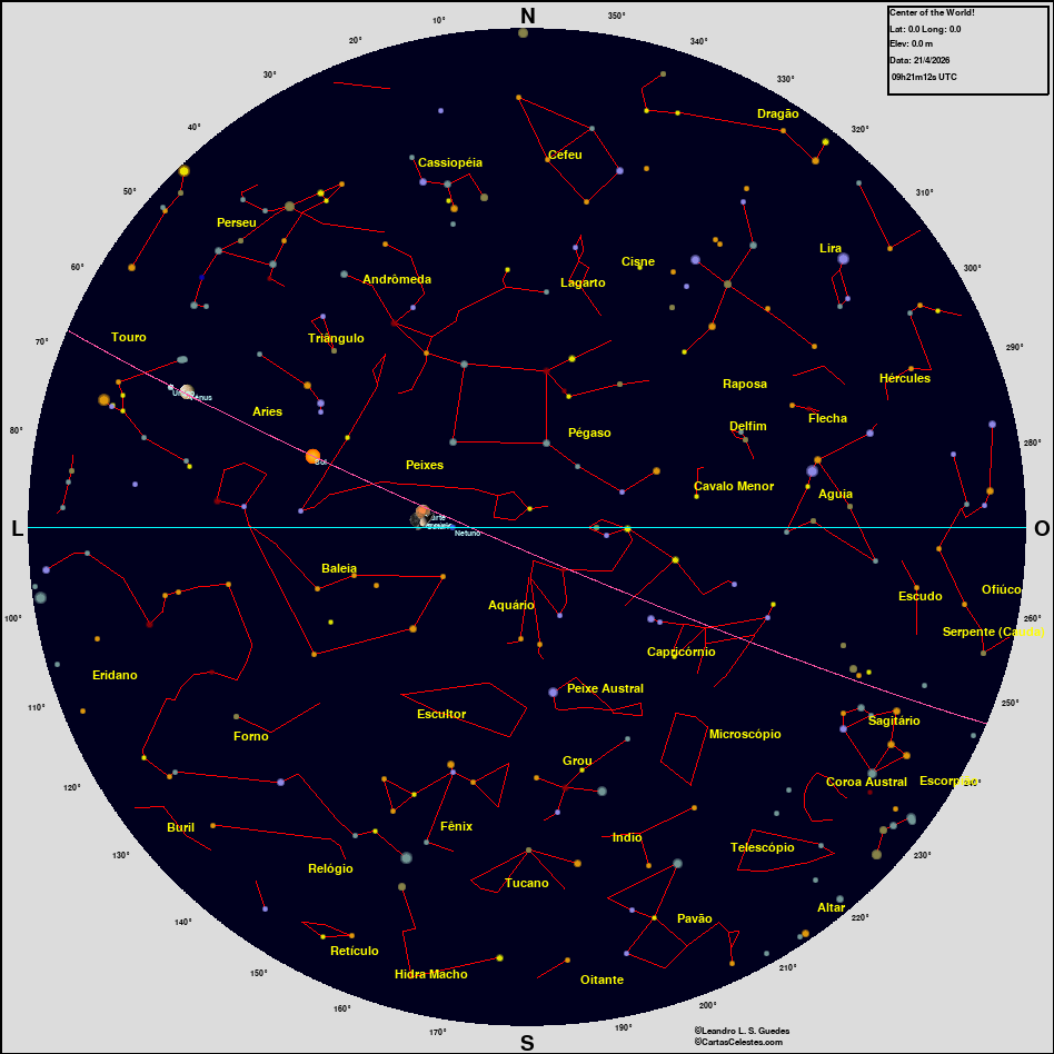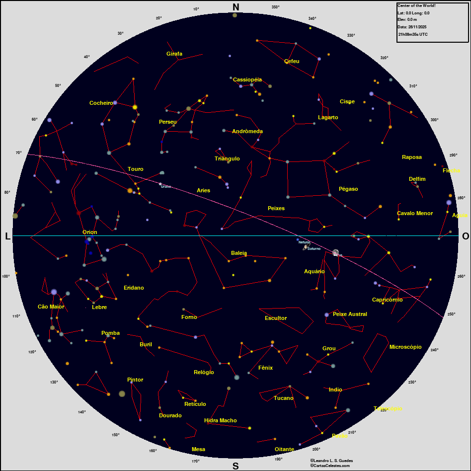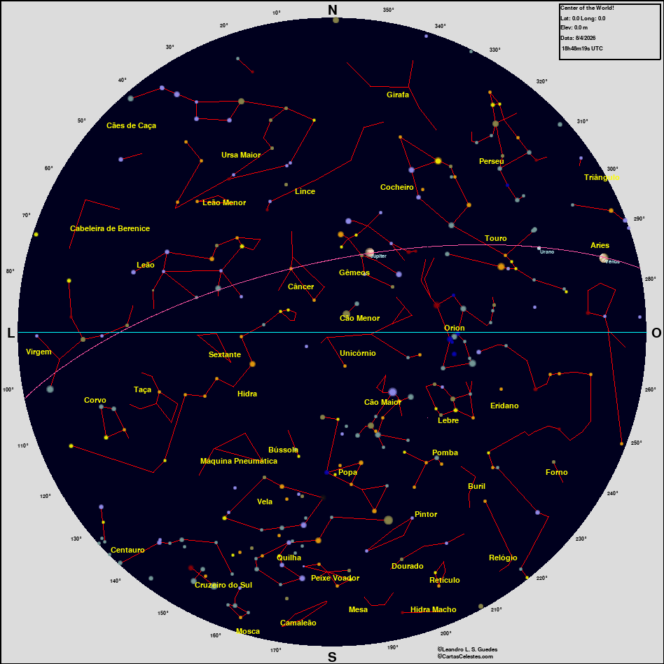 Neste site você encontra todas as informações necessárias para observar o céu, seja você um astrônomo amador, profissional ou um apaixonado pelo céu que está iniciando agora suas atividades na Astronomia. Esperamos que encontre tudo o que deseja para planejar uma noite de observação do céu, e para aprender sobre esse aspecto da natureza que fascina o homem desde seus primeiros passos nesse planeta. Bons Céus!