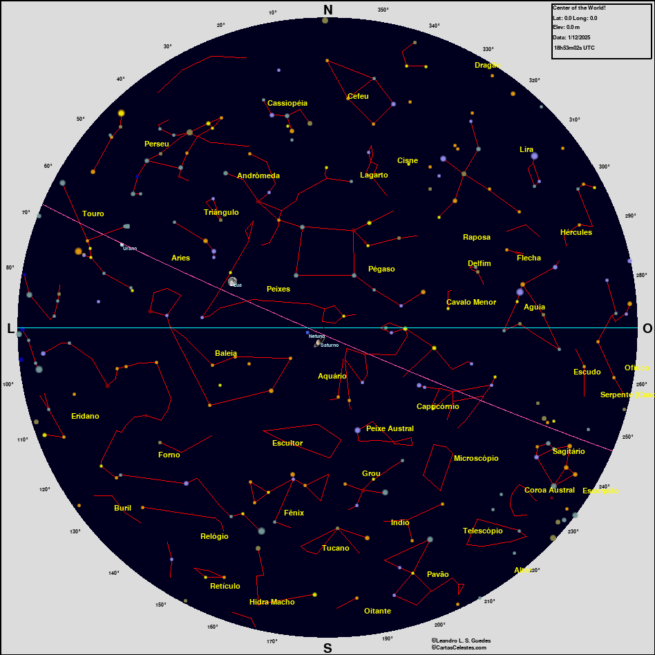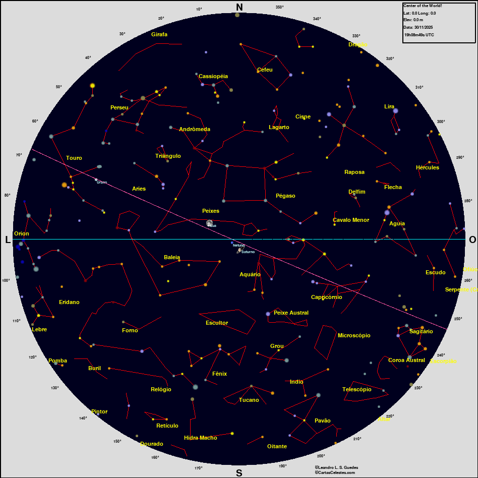 Neste site você encontra todas as informações necessárias para observar o céu, seja você um astrônomo amador, profissional ou um apaixonado pelo céu que está iniciando agora suas atividades na Astronomia. Esperamos que encontre tudo o que deseja para planejar uma noite de observação do céu, e para aprender sobre esse aspecto da natureza que fascina o homem desde seus primeiros passos nesse planeta. Bons Céus!